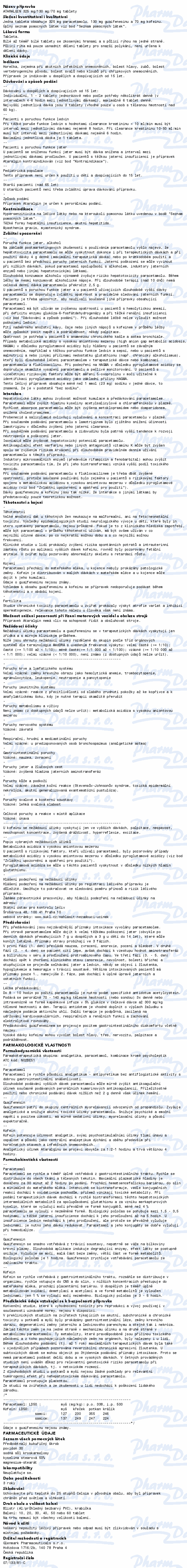 | ATC: | paracetamol, combinations excl. psycholeptics | |
