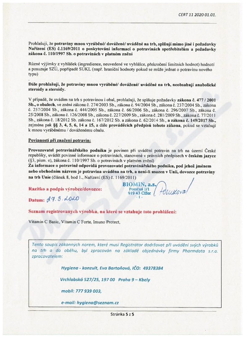 | Výrobce: | Biomin a.s. | |