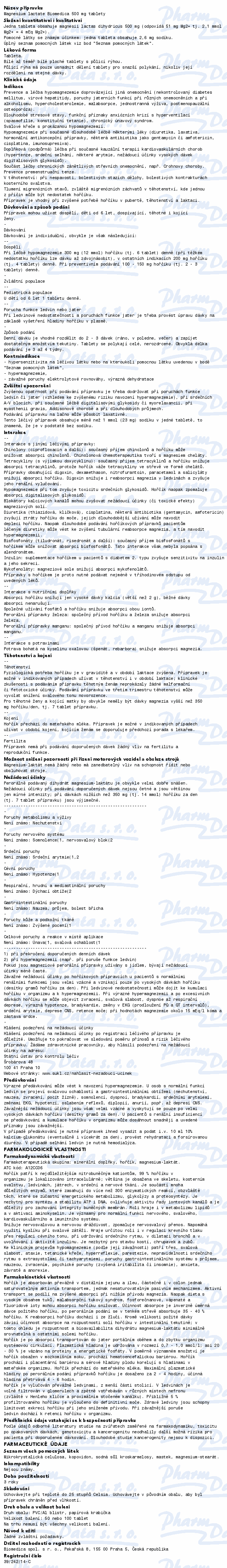 | ATC: | magnesium lactate | |