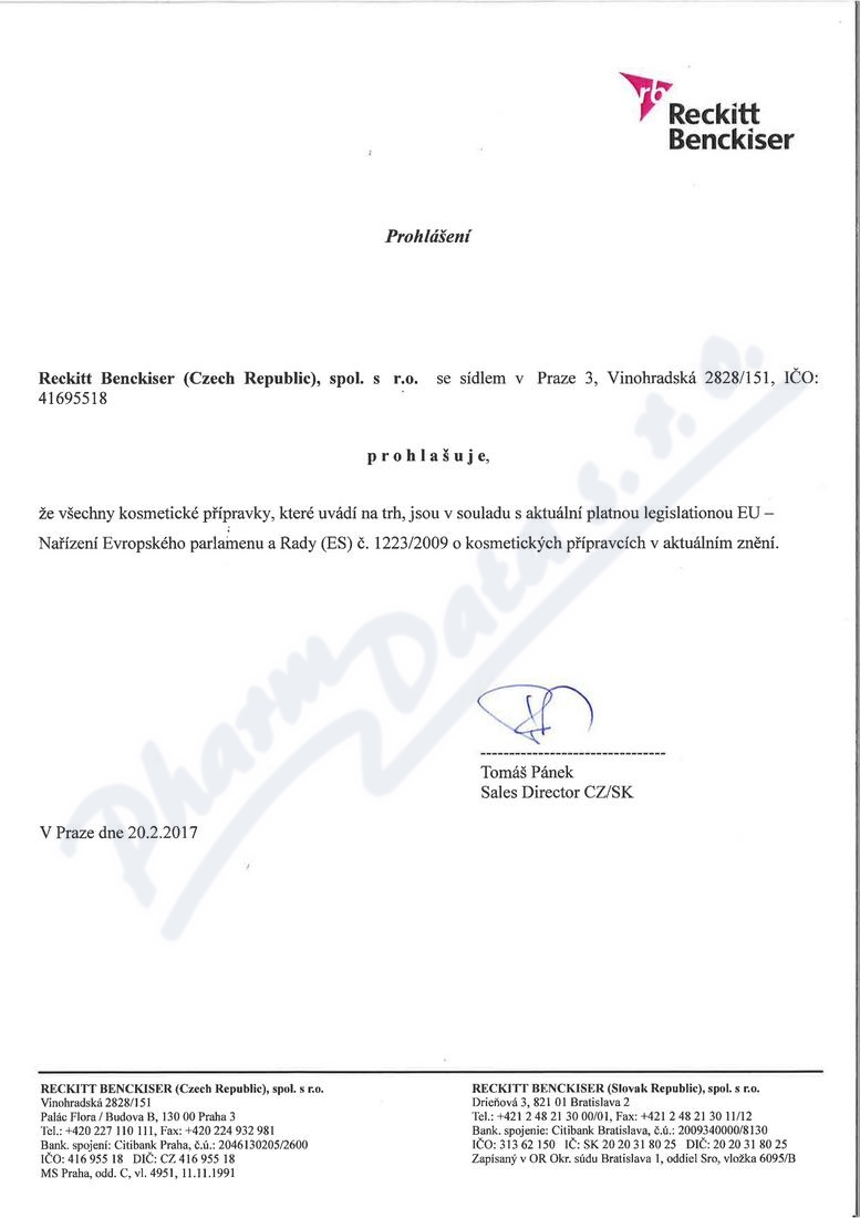 | Výrobce: | Reckitt Benckiser (Czech Republic), spol. s r.o. | |