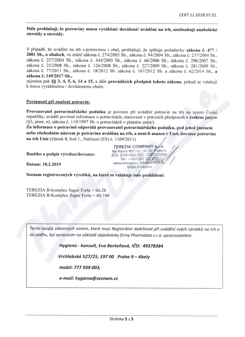 | Výrobce: | TEREZIA COMPANY s.r.o. | |