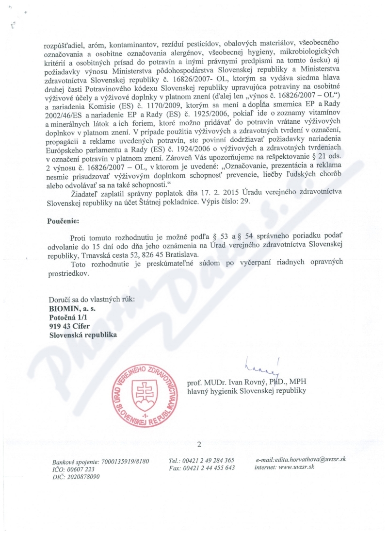 | Výrobce: | Biomin a.s. | |