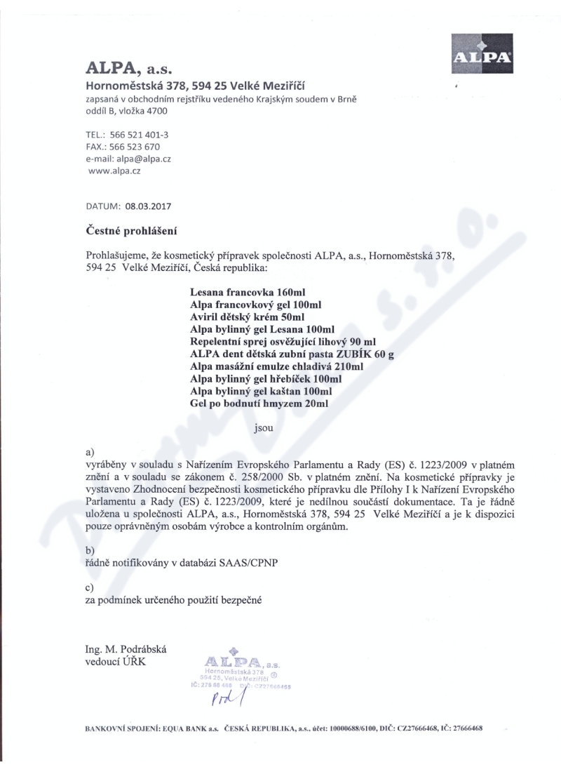 | Výrobce: | ALPA | |