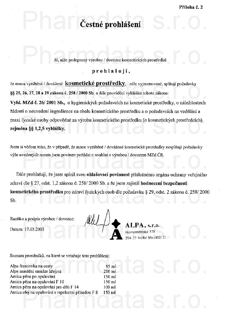 | Výrobce: | ALPA | |