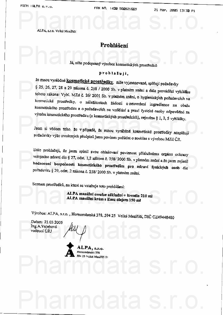 | Výrobce: | ALPA | |