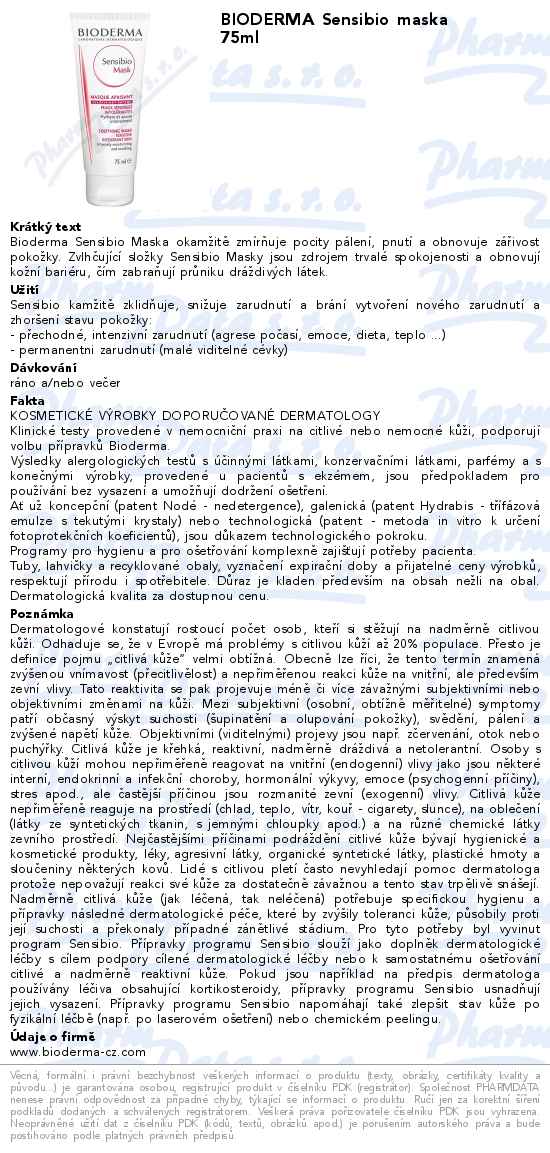 Bioderma Sensibio Maska 75 ml aplikujte jenou denně na očištěnou pleť.