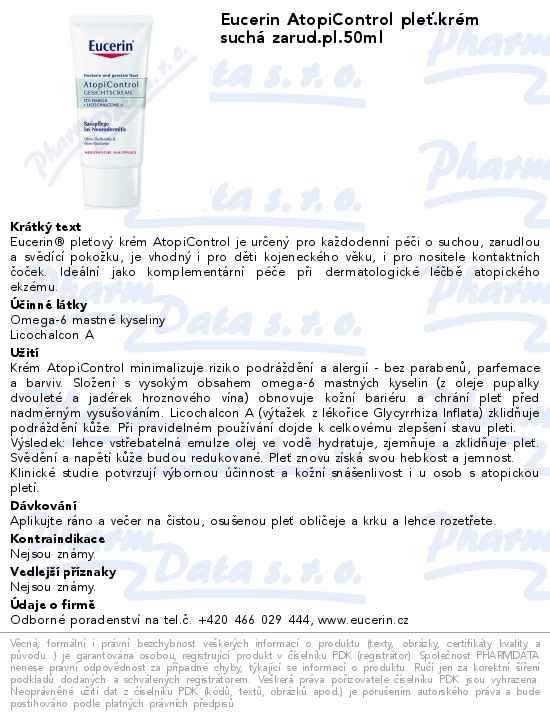 EUCERIN Eucerin® pleťový krém AtopiControl je určený pro každodenní péči o suchou, zarudlou a svědící pleť, je vhodný i pro děti kojeneckého věku, i pro nositele kontaktních čoček. Ideální jako komplementární péče při dermatologické léčbě atopického ekzému.