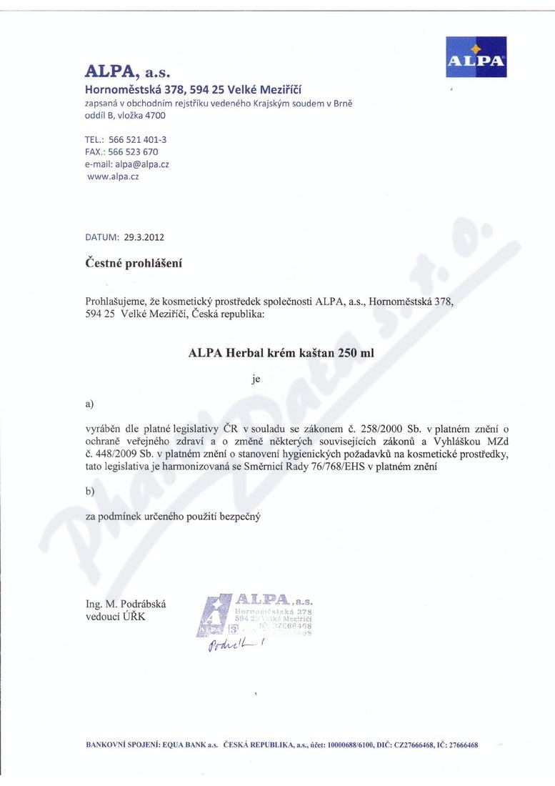 | Výrobce: | ALPA, a.s. | |