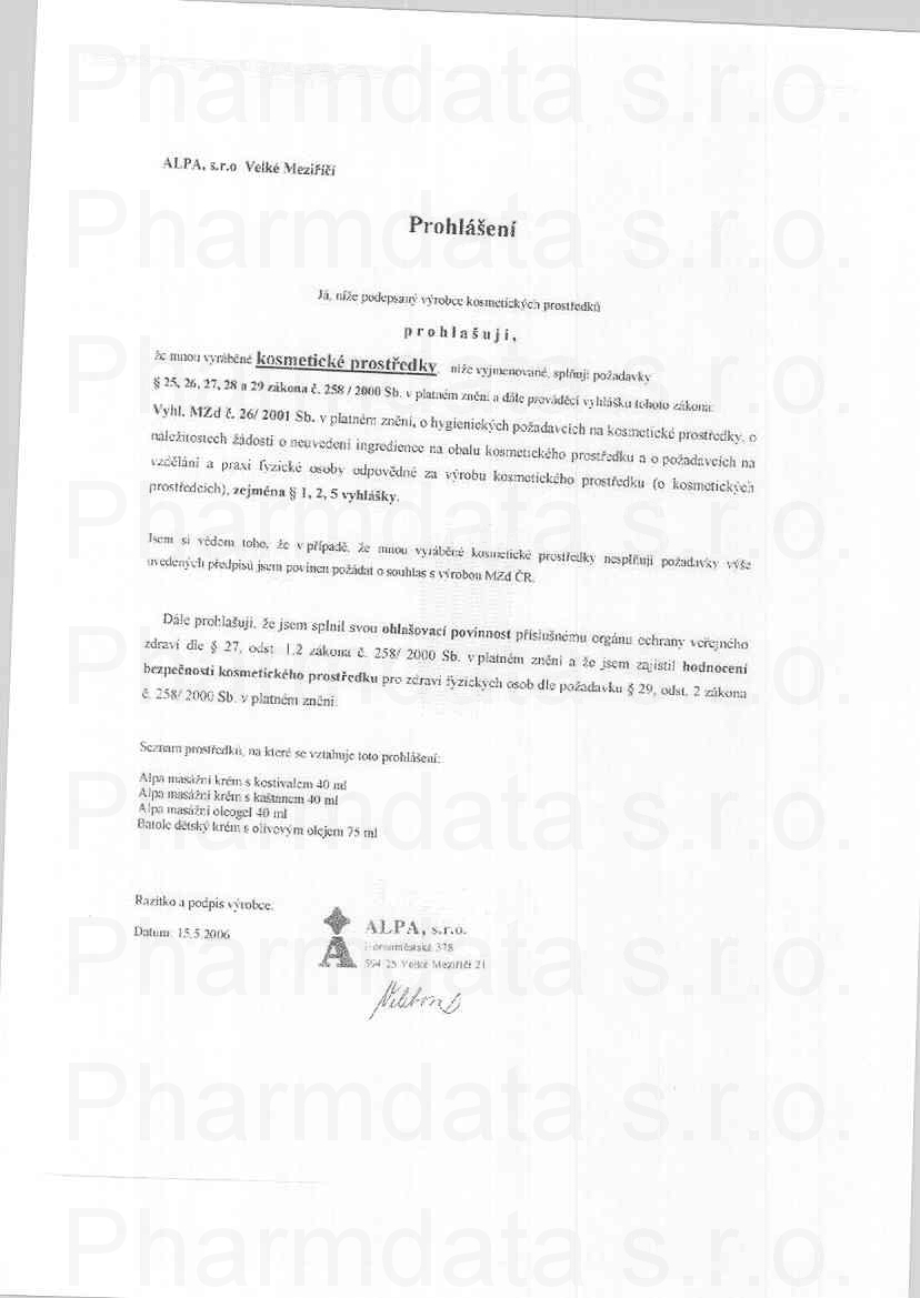 | Výrobce: | ALPA | |