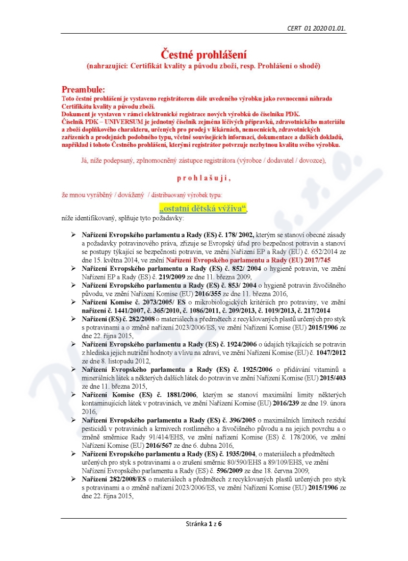 | Výrobce: | Nutricia a.s. | |