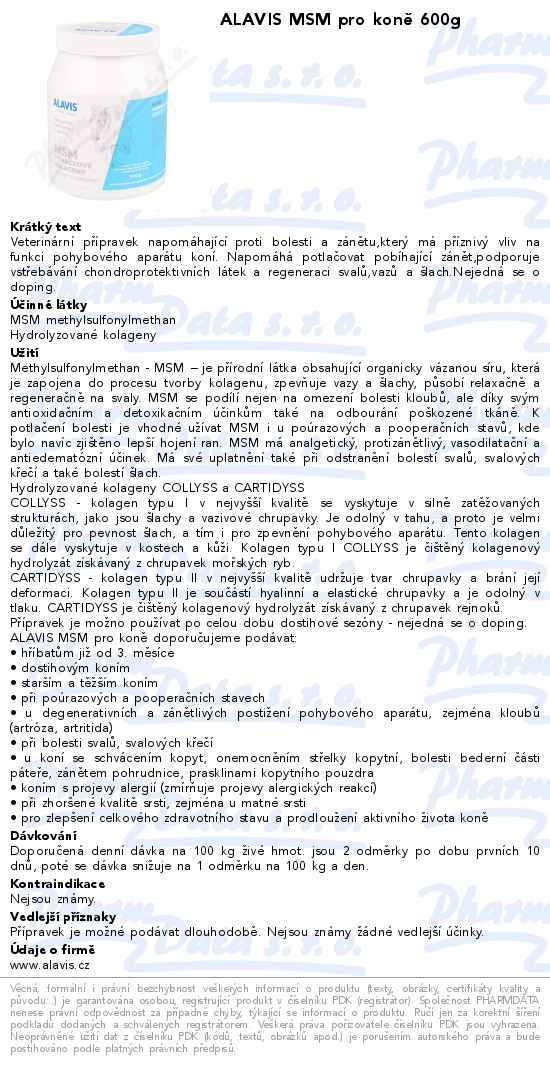 Alavis™ CanabiFlex CBD je veterinární přípravek, který obsahuje látku MSM
