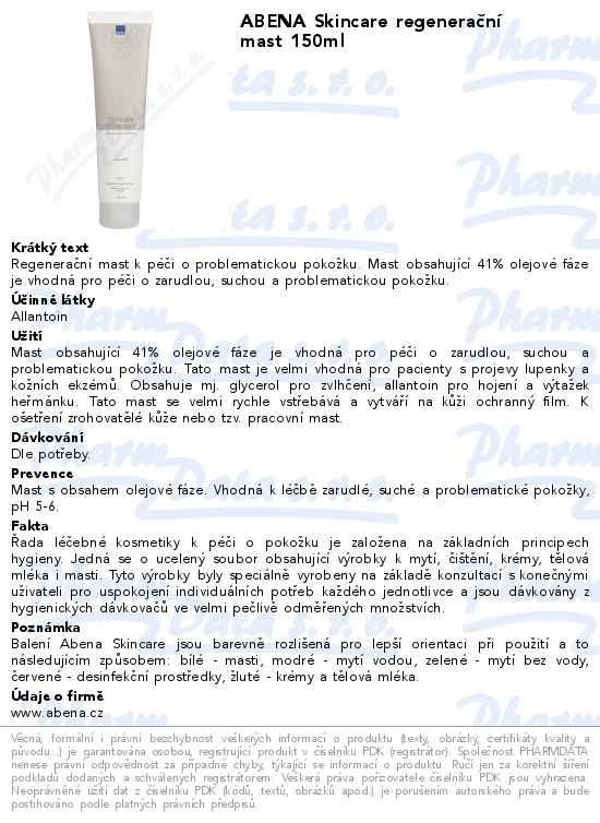 Úvod / Kosmetika / Tělová kosmetika / ABENA regenerační mast 150ml 6659